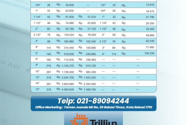 Harga Pipa Air Terbaru Pipa HDPE merek Vinilon, Langgeng, Supralon, Maspion, Rucika, Inoac dapatkan harga murah disini. Karakter Fisik Pipa HDPE (PE-100) :-…
